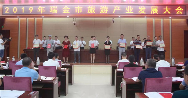 2019年8月13日,瑞金市委、市政府召开2019瑞金市旅游产业发展大会,瑞金市委书记许锐出席会议并讲话,市委副书记潘金城主持会议,副市长罗俊腾作工作报告;出席会议还有赣州市文广新旅副局长罗沪京、市委副书记李立东、李市人大主任学通、市政协主席彭强、市委组织部长潘少平、副市长曾宪柏、市政法委书记刘小龙等,有关部门负责人以及企业界代表参加了会议。