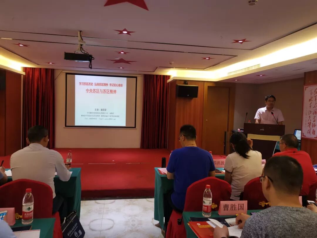 11日下午 , 在瑞金红色文化教育基地学术报告厅开展《中央苏区与苏区精神》专题教学,中共赣州市委党校谢昌荣老师为学员授课。谢老师从苦难辉煌的中央苏区历程、伟大的苏区精神及弘扬苏区精神、砥砺奋进新时代三个方面讲述了弘扬伟大红色精神的重大意义。