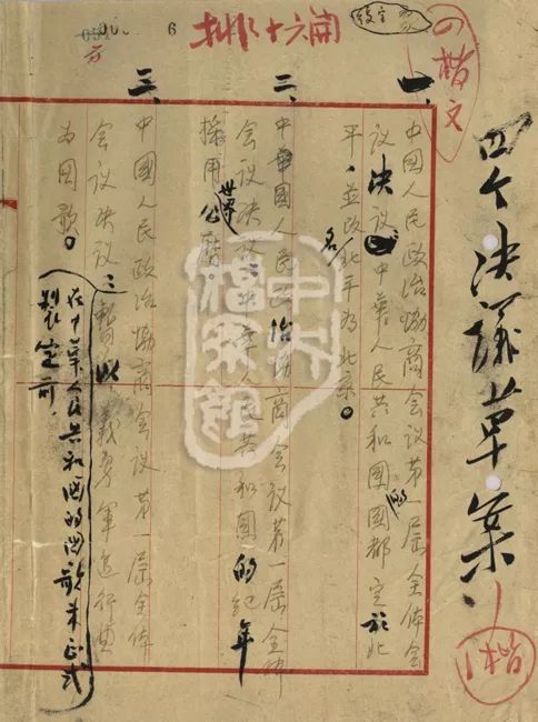 中国人民政治协商会议一届全体会议通过的关于国旗、国徽、国歌、国都、纪年的决议草案