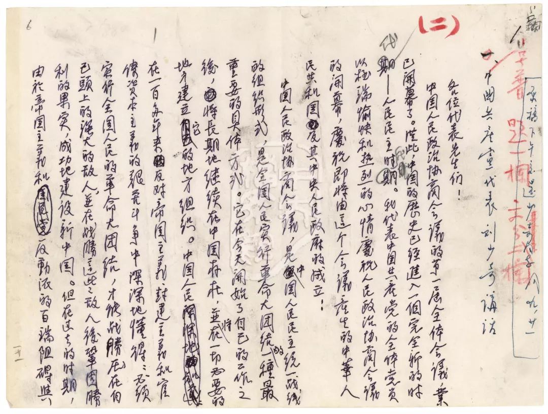 刘少奇在中国人民政治协商会议一届全体会议上的讲话