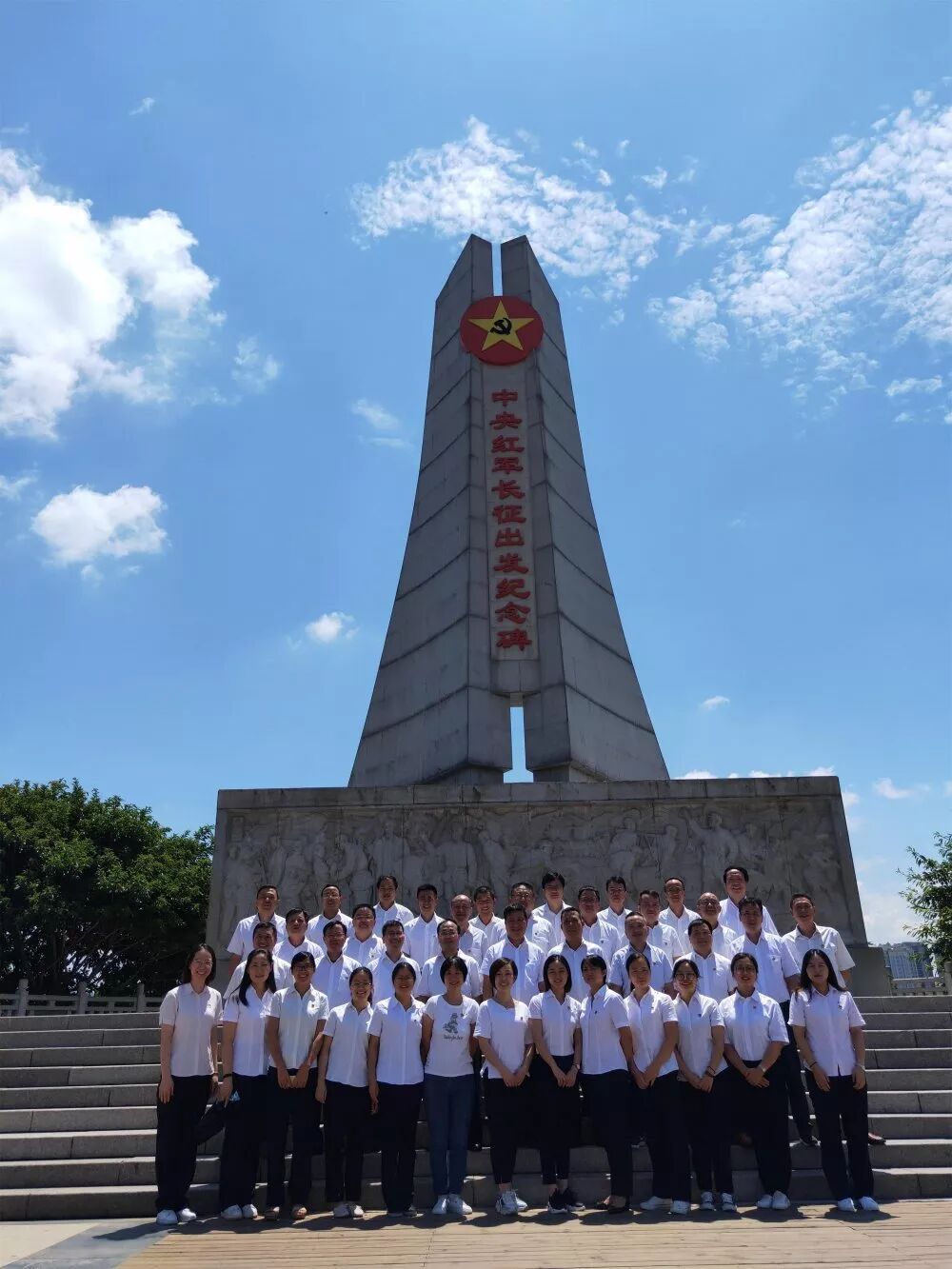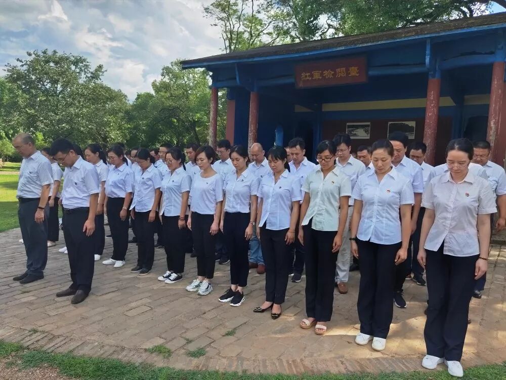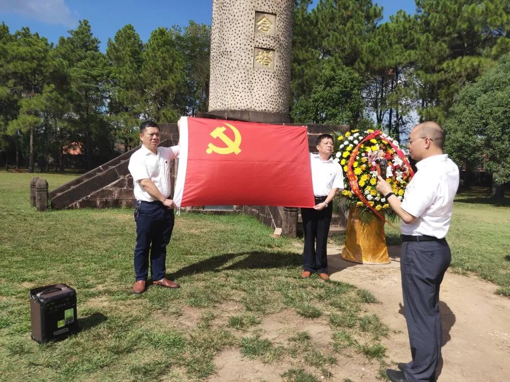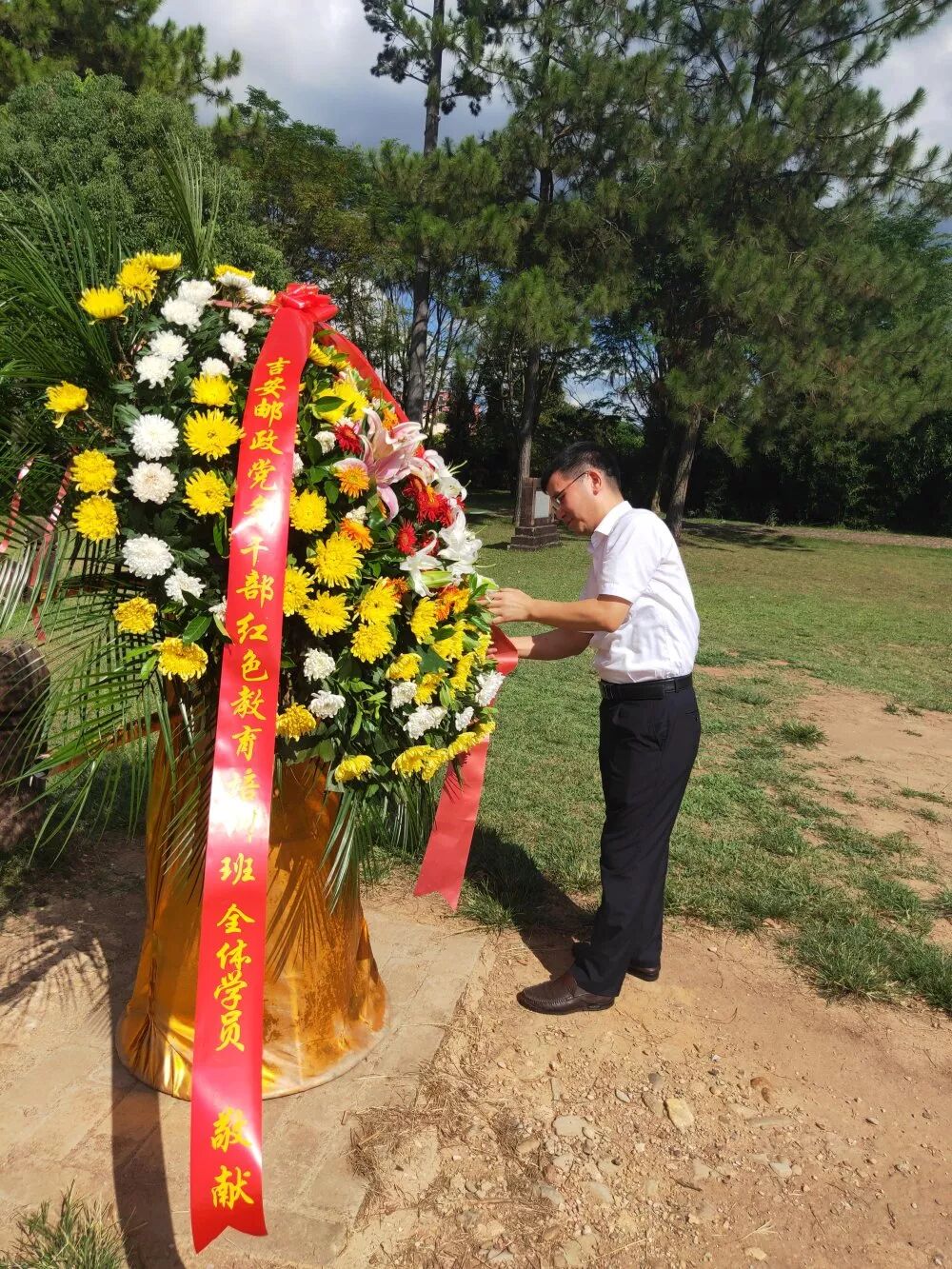在叶坪红军烈士纪念塔前,全体学员整齐队列,庄严肃穆,向红军烈士敬献花篮;面对鲜红的党旗,庄严宣誓,重温入党誓词,表达对革命先烈的无限敬仰。