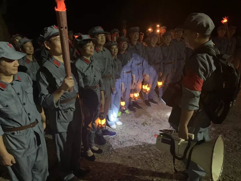 24日晚 瑞金红色文化教育基地组织学员在云石山马道口进行了“重走长征路”体验教学。
